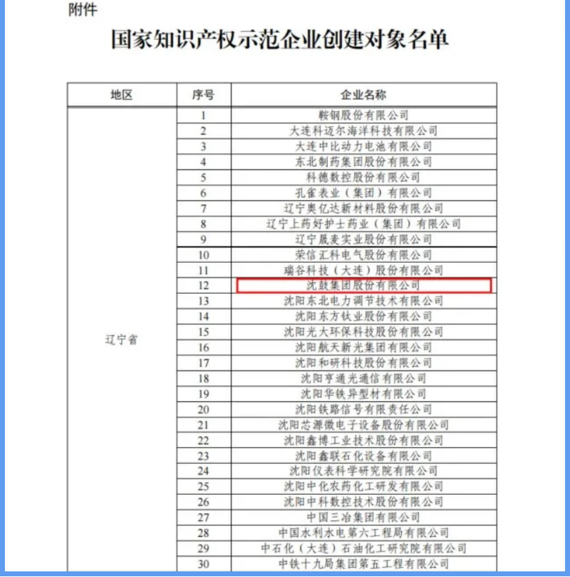 近日,国家知识产权局正式公布2025—2027年国家知识产权强国建设示范创建对象名单,沈鼓集团成功入选国家知识产权示范企业创建对象,这是国家层面对我集团知识产权创造、运用、管理、保护全链条能力的高度认可,也是沈鼓在创新发展道路上取得的又一重要里程碑,更是全体沈鼓人凝心聚力、深耕技术创新的丰硕成果。此次辽宁共有34个地区、单位入选,沈鼓作为沈阳乃至辽宁装备制造领域的代表企业跻身其中,不仅彰显了在行业内的创新标杆地位,也为辽宁省知识产权强国建设注入了沈鼓力量。